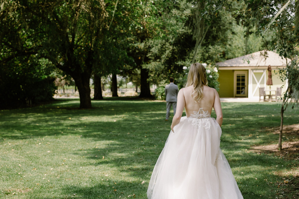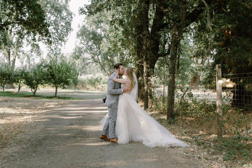 Once upon a time Justine was out for a night on the town to celebrate a friend's birthday. Peter spotted her from across the crowded room and time stood still. He walked straight over to her, and the rest is history. Fast forward to a hot summer day in the rolling hills of Mendocino County where these two started the rest of their lives together.